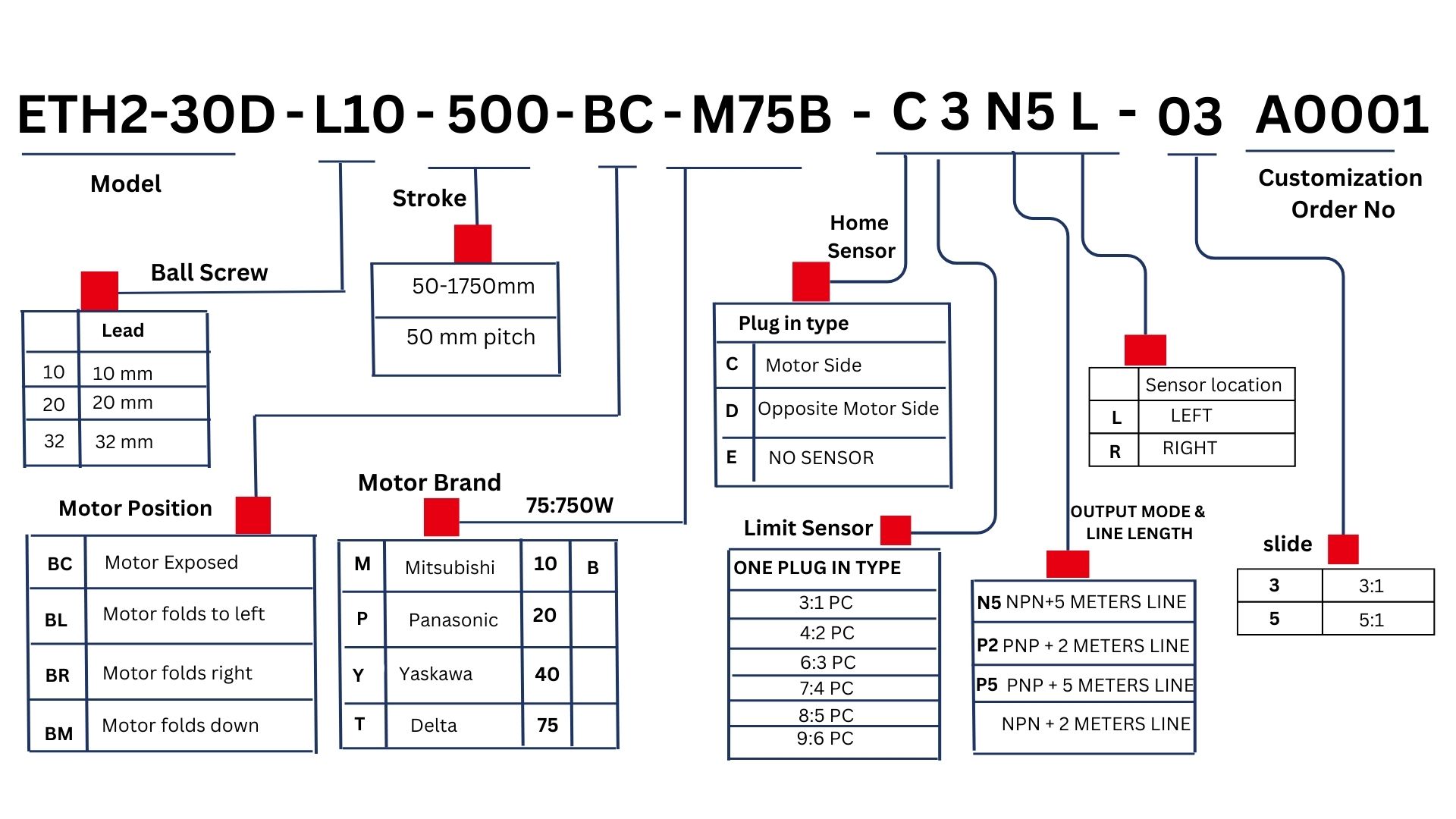 | Stroke Pitch | mm | 50-2100mm/50 intervals(50mm pitch) | ||||