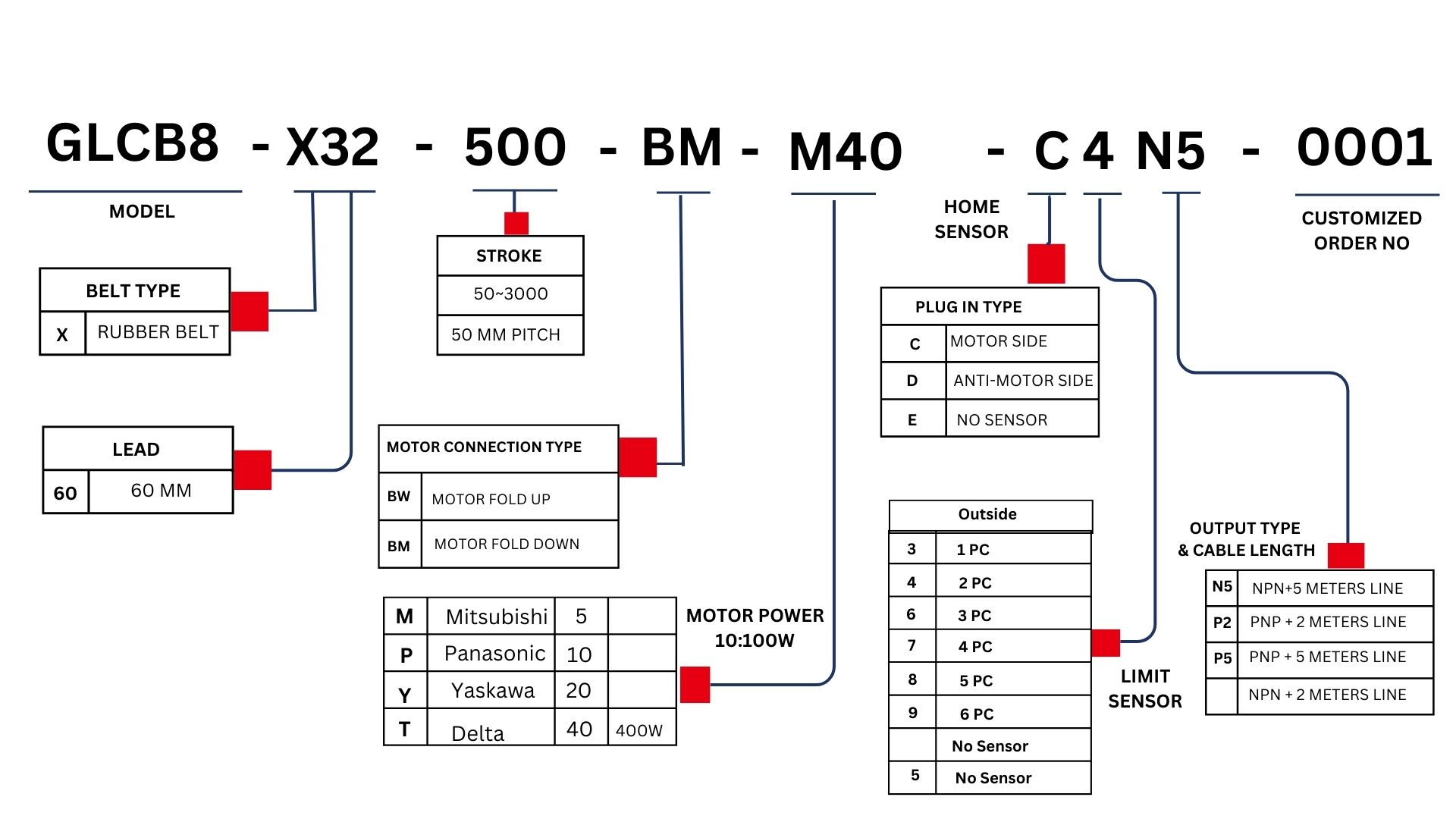 | Stroke | N | 50-3000mm/50 intervals (50 Increments) | ||||